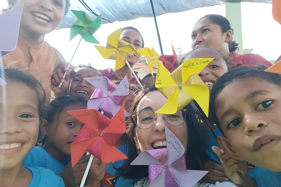 On our mission trip to Timor-Leste, we explored our work at the Padre Manuel Nunes Formigão Social Center in Memo, under the guidance of the Reparatory Sisters of Our Lady of Fatima. At the same time our founders arrived and settled at the Center, a training session was taking place with the Poor Clare Sisters of Timor-Leste. We quickly got to know each other and were invited to the Santa Clara de Assis Social Reception Center in Tunubibi to do some activities with the children at the Center!